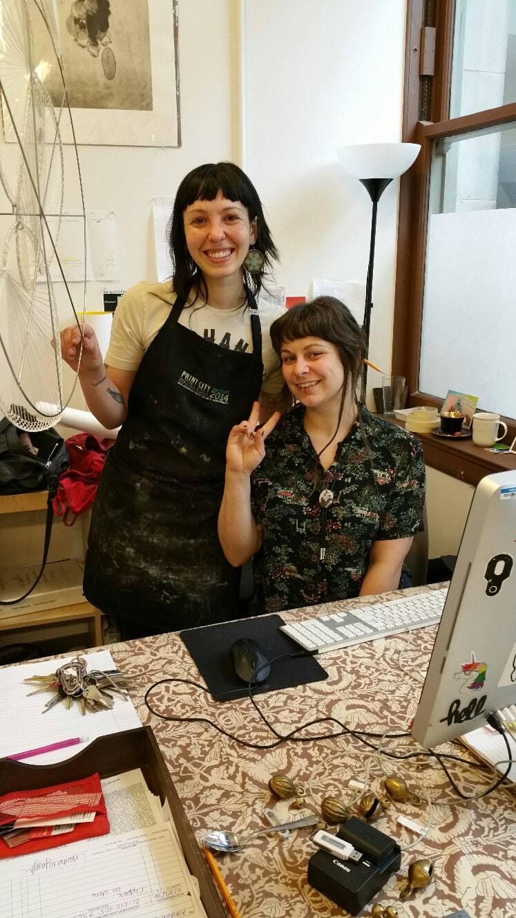 And then I made it to the Print Media Lab, where Matthew works, at PNCA.  I am in constant awe and admiration for the next generation of printmakers and students, who use their youthful energy to not only create amazing work, but reach out to the community: teaching, volunteering, and yes, being rock stars in their local bands!
